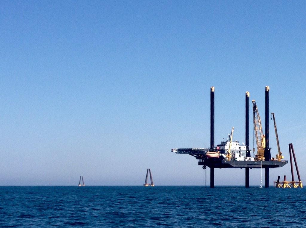 Image: Deepwater Wind (Foundation installation at the U.S. first offshore wind farm.)