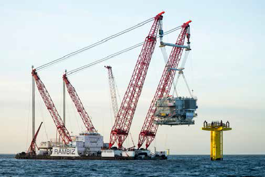 The topside was lifted by the Rambiz 3000 from a barge in IJmuiden, near Amsterdam, and sea-fastened. Thereafter the topside was transported in the hooks of the Rambiz 3000 to the wind farm. Scaldis had specially designed frames installed on the bow of Rambiz 3000. The OHVS was installed in 14 hours in February this year. It is a known challenge to find a good offshore installation window for the North Sea in winter.