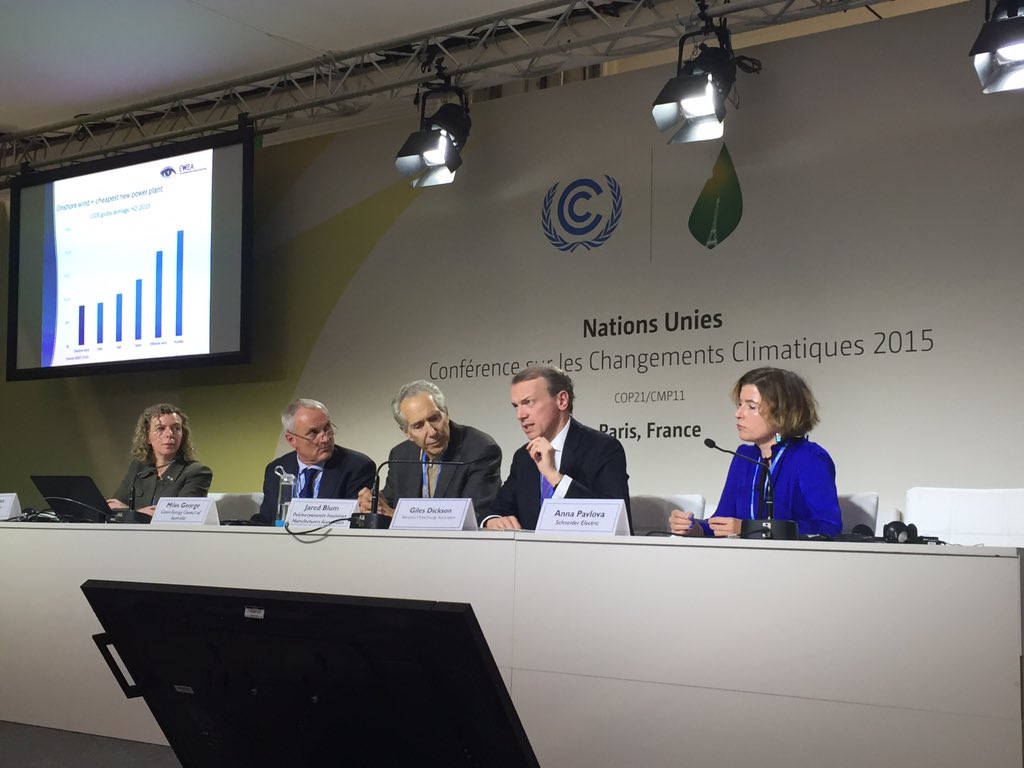 Giles Dickinson speaking at COP21. Image source: EWEA