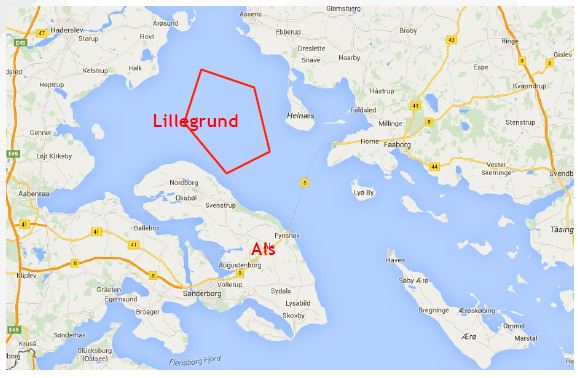 The planned nearshore project named Lillegrund will be located north of the Danish island Als.