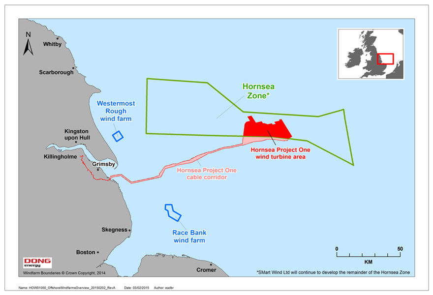 Hornsea Project One will comprise up to 240 wind turbines, each between 5MW and 8MW capacity, and will be located 120km off the Yorkshire coast, covering approximately 407 square kilometres.