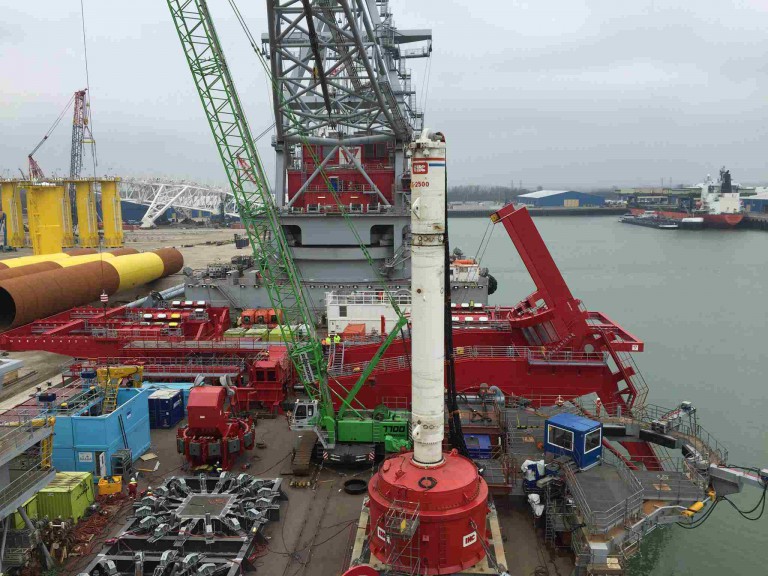 The vessel is currently docked at Verbrugge, Vlissingen, where it has been equipped with an outrigger frame, TP grillage, storage grillage and an “upend cradle”, according to Seaway Heavy Lifting’s social media pages.