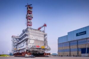 At the port, the vessel was equipped with a monopile gripper, so it can install the 67 foundations for the German 402MW project.
