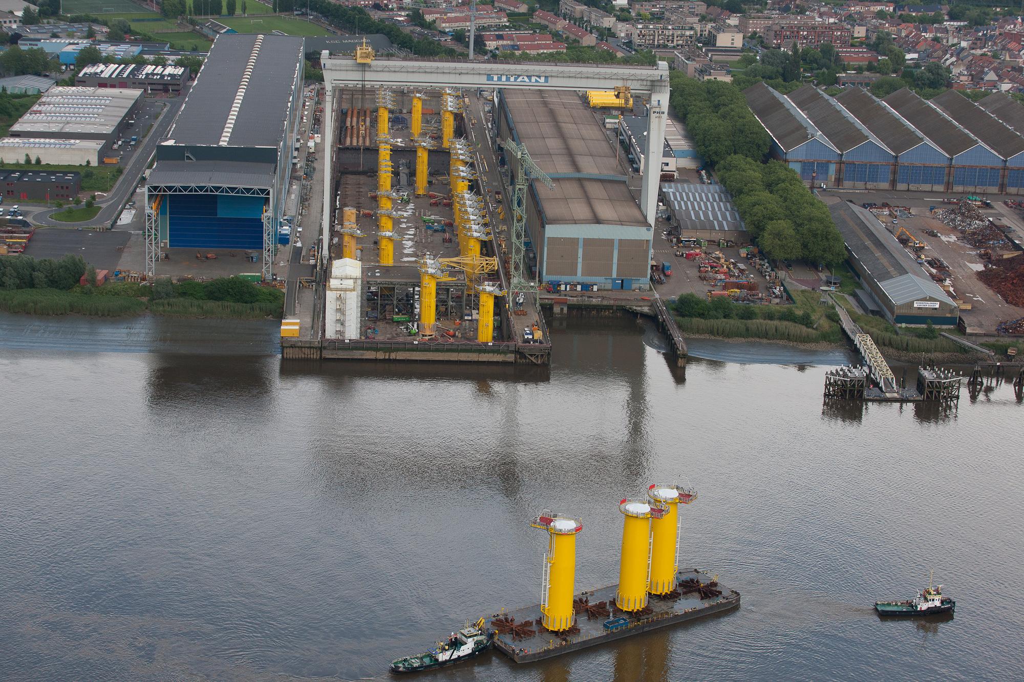 On Wednesday, the last three transition pieces for the Dudgeon offshore wind farm left Smulders’ yard in Hoboken.