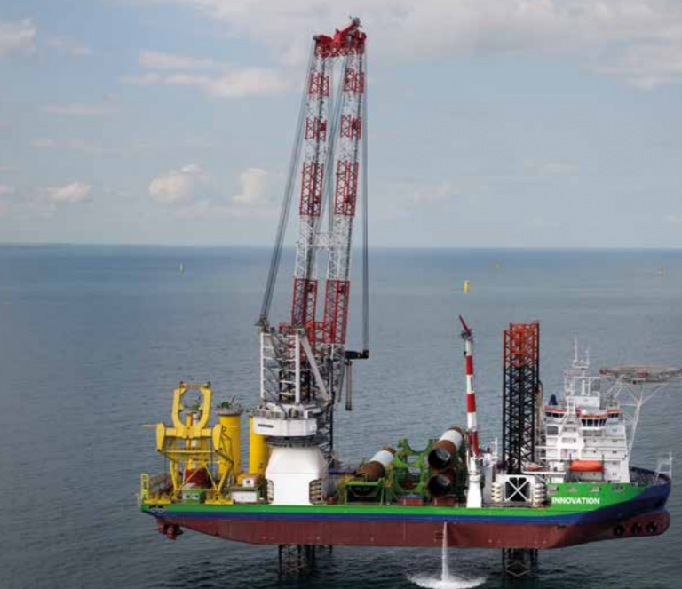 GeoSea’s jack-up vessel Innovation has installed the first of 91 monopile foundations at DONG Energy’s 580MW Race Bank wind farm located approximately 17 miles off the coast of North Norfolk, UK, according to local media.