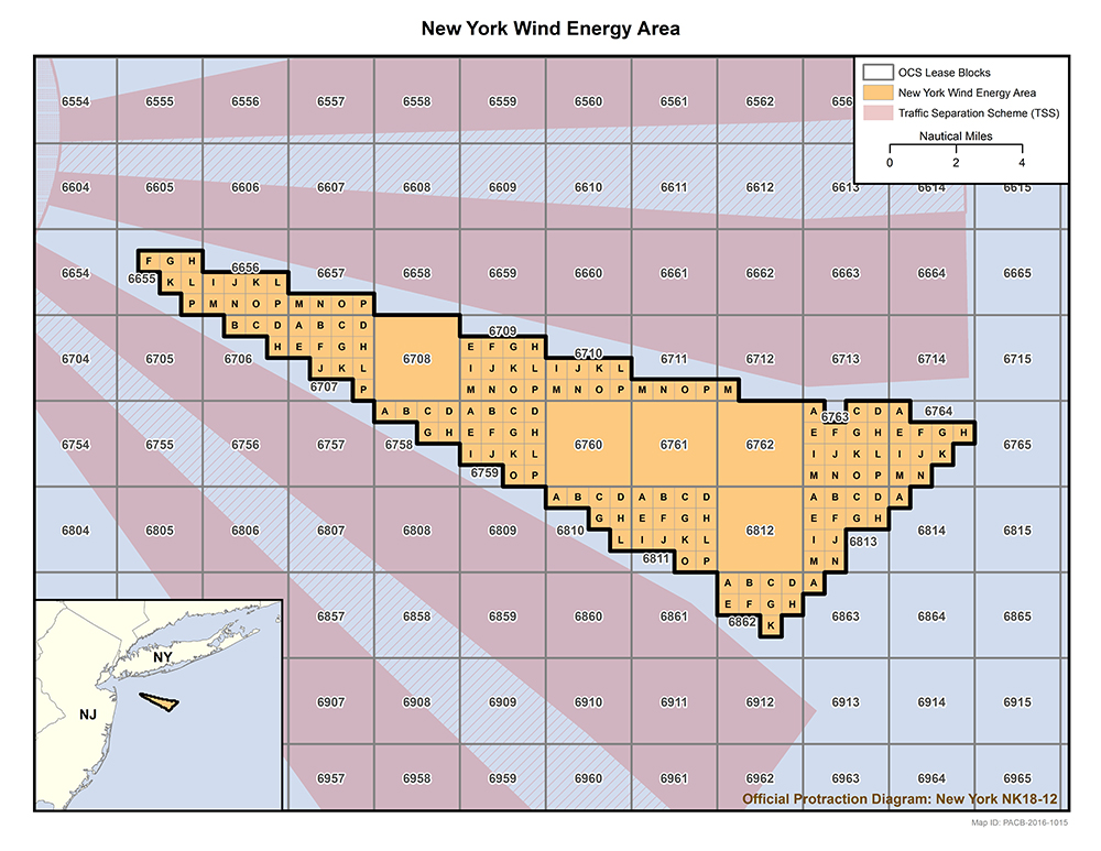 The proposed lease area, approximately 11 miles south of Long Island, is identical to the New York Wind Energy Area, which Interior’s Bureau of Ocean Energy Management (BOEM) identified earlier this year in consultation with members of its New York Intergovernmental Renewable Energy Task Force.