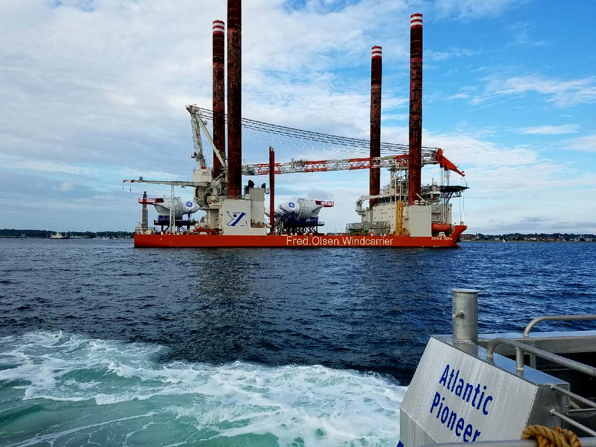 The first blades and tower sections for the five Haliade 6MW turbines have already started their journey from the Port of Providence to the installation site onboard two lift boats – L/B Paul and L/B Caitlin – which will support the Brave Tern during the installation of the turbine parts.