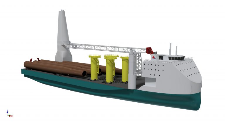With the dimensions of 165m in length and 43,5m in width, FFI 1700 provides a working deck for stowing four XL monopiles up to 100m in length, with a 10m diameter and 1,500t in weight, the designer said.