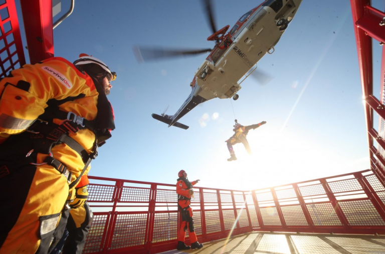 The aircraft is on a 5-year contract for winching maintenance personnel onto Gemini’s  wind turbines and is equipped with a UTC Goodrich winch. The midsized twin-engine helicopter of the 4.8-ton class is the first of its kind, specifically designed for offshore applications. The aircraft can accommodate up to ten passengers in its cabin.