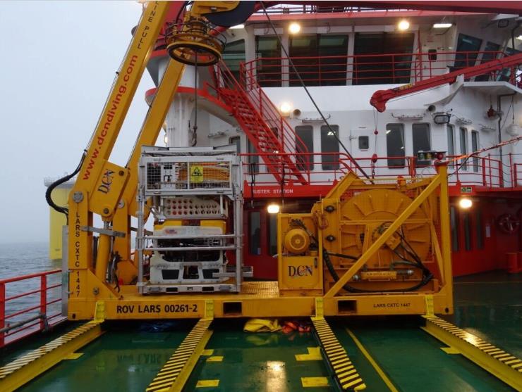 DCN Goes Creative with Gode Wind WorkFred Bosman, ROV operations manager at DCN Diving, explained the technique used: “We first attached an hydraulic clamp on the upper part of the grouting hose, which was connected to both Cougar and vessel crane. Once the clamp was secured to the grouting hose the ROV was pulled back from the clamp so the hose was no longer connected to the ROV but only to the vessel crane.