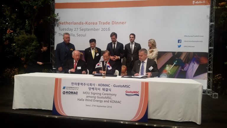 Dutch design and engineering company GustoMSC, South Korean offshore wind developer Halla Wind Energy, and Korean Maritime Consultants (KOMAC) signed a three-way Memorandum of Understanding (MoU) with the intention to mutually develop and design the GustoMSC Tri-Floater, a floating foundation for wind turbines.