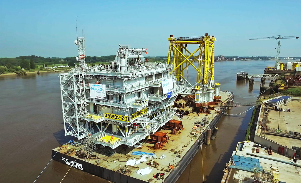 The offshore substation topside and jacket left ENGIE Fabricom’s Hoboken yard in Belgium on 15 June.