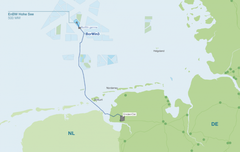 The BorWin3 link will transport power via cable over 130km at sea and a further 30km on land to the grid feed-in point in Emden. The direct current will then be converted back into alternating current for further transmission and distribution.