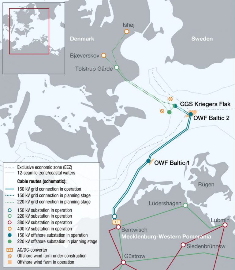 Kriegers Flak CGS is a joint project between Energinet.dk and 50Hz Transmission to interconnect the Danish and German grid via two offshore wind farms, Denmark’s 600MW Kriegers Flak and Germany’s 288MW Baltic 2.