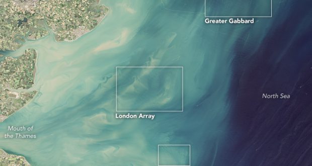Offshore wind turbines installed in the North Sea have been giving rise to sediment plumes, satellite images taken by NASA’s Operational Land Imager (OLI) show. For at least the past decade, satellites have spotted white dots cropping up in the North Sea. If viewed from Earth’s surface, you would see that these dots are actually wind … Continue reading Offshore Wind Turbines Make Sediment Plumes in North Sea