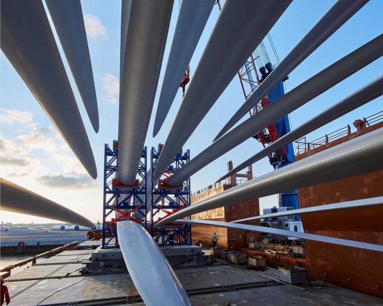LM 73.5 meter blades ready to be shipped to Block Island, the first offshore wind farm in the U.S, for installation in August 2016. (Image source: LM Wind Power/ cropped)