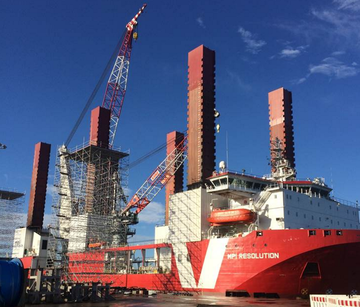MPI Resolution is the world’s first purpose-built WTIV. Designed to transport, lift, install and decommission components, the vessel features a dynamic-positioning system, a jacking system, 3,200m2 of deck space, accommodation facilities and 600Te lifting capacity.