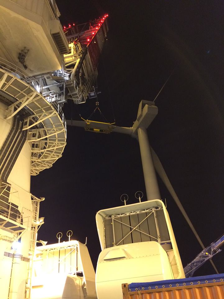 Installation of wind turbines at the Nobelwind offshore wind farm in Belgium is underway and some of the works are being done during nighttime due to weather conditions.