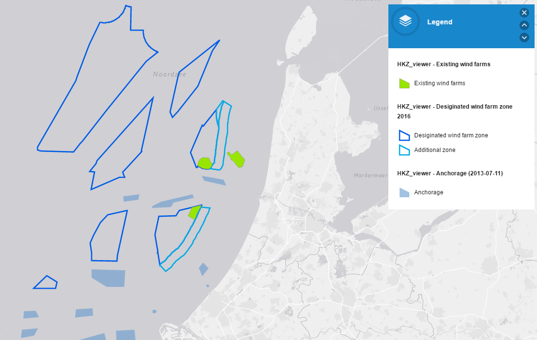 Screenshot of RVO.nl's digital map of the Hollandse Kust (zuid) Offshore Wind Farm Zone (HKZ WFZ)