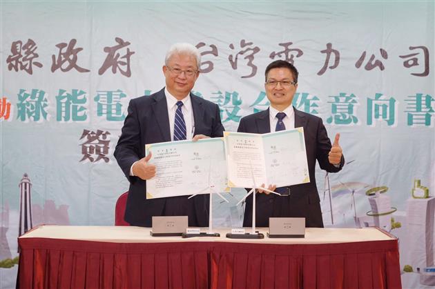 Taiwan Power Co. (Taipower) and Changhua County Government yesterday signed a Memorandum of Understanding (MOU) for the development of a series of renewable energy projects in the county, including offshore wind.
