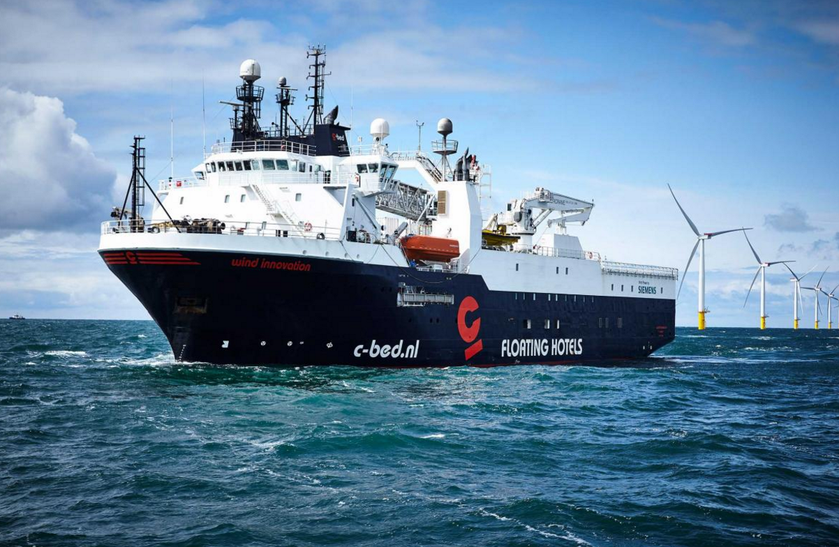 C-bed’s floating hotel Wind Innovation has started 2017 by heading off to the German North Sea and starting a new charter on the 402MW Veja Mate offshore wind farm.