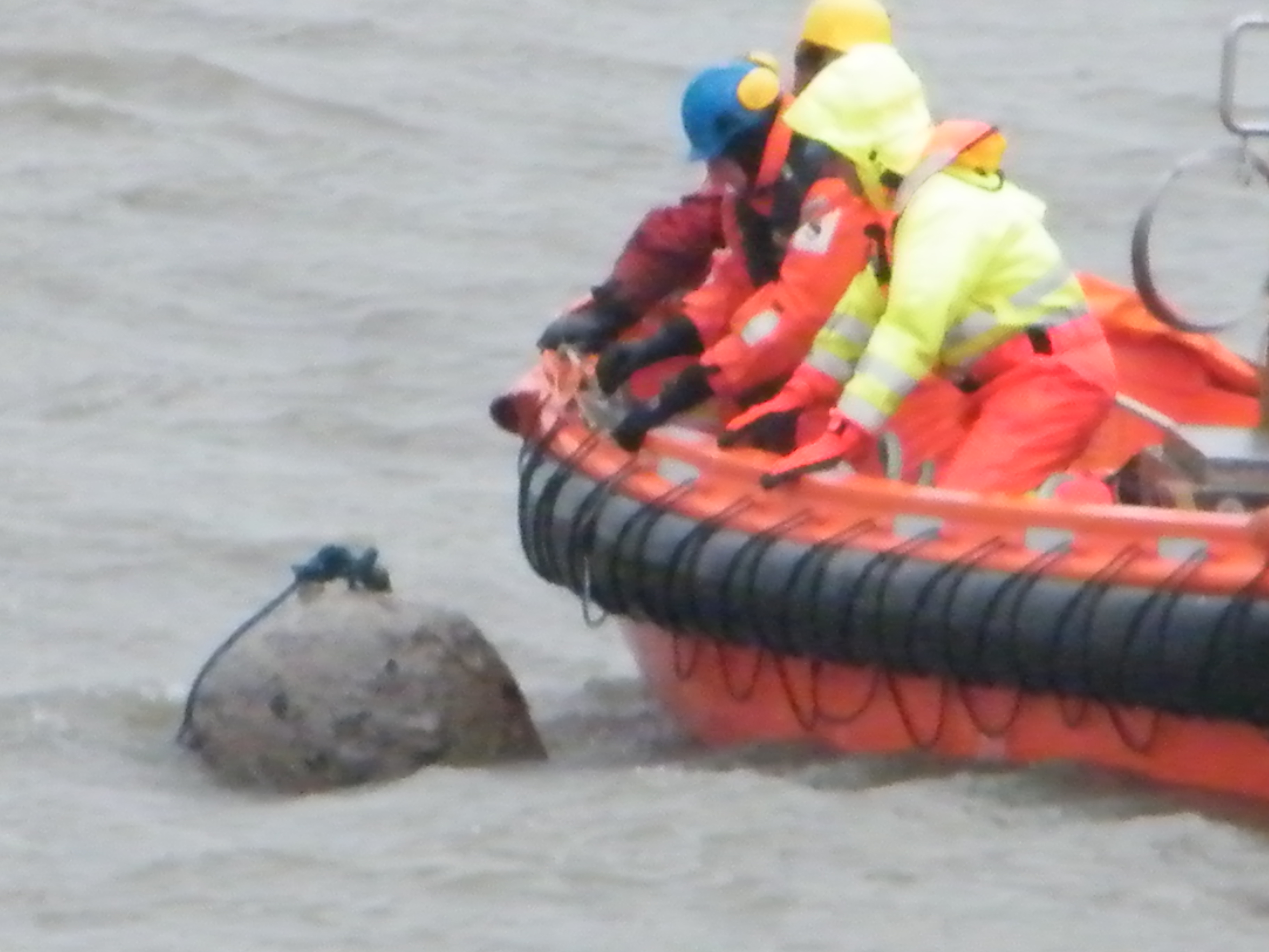Two explosives disposal experts from Havariekommando’s munitions division placed an explosive charge on the sea mine. The team eliminated the sea mine without incidents and then investigated the area for potential remains after the explosion.
