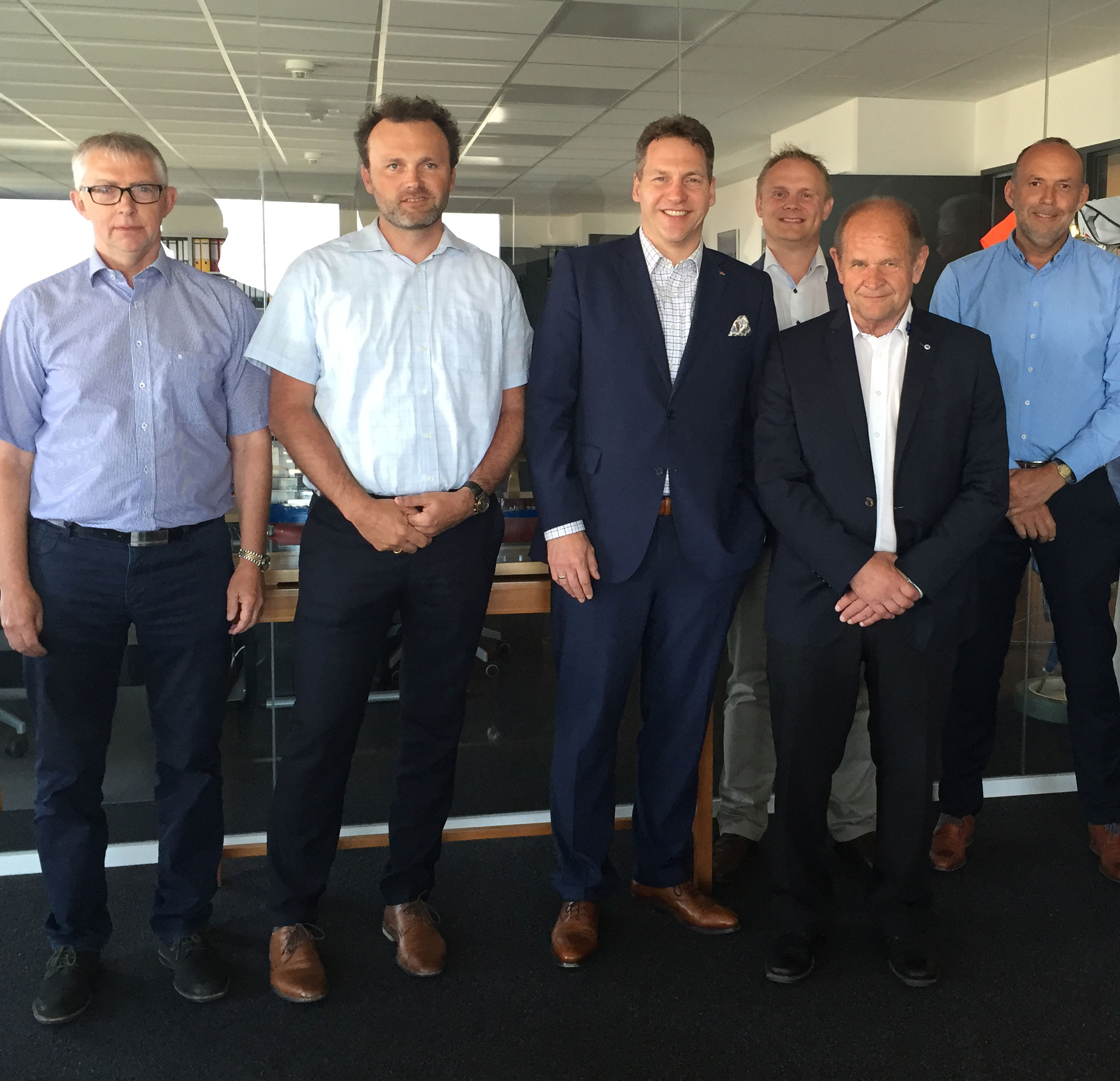 From Left: Søren Stougaard, Peter Ehrhorn/Blue Water, Arne Ehlers/Managing Director of BREB, Brian Sørensen, Kurt Skov and Per Jensen from Blue Water. Source: Blue Water Shipping
