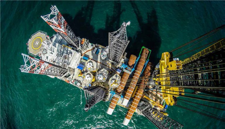 The free deck area on board a wind farm installation vessel is, of course, a finite space which is defined by the length and beam of the vessel when it was built. The area that is accessible to the vessel’s cranes installed in the shipyard is also finite, defined by the position of the crane and the vessel’s legs, as well as the crane’s load chart (lifting capacity in relation to boom length and working radius). But how that space is used is anything but finite. This space is maximised by the ingenuity of the specialist engineers to allow for the ever-increasing dimensions of the foundations, transition pieces, towers, nacelles and blades that the wind turbine component manufacturers are producing.