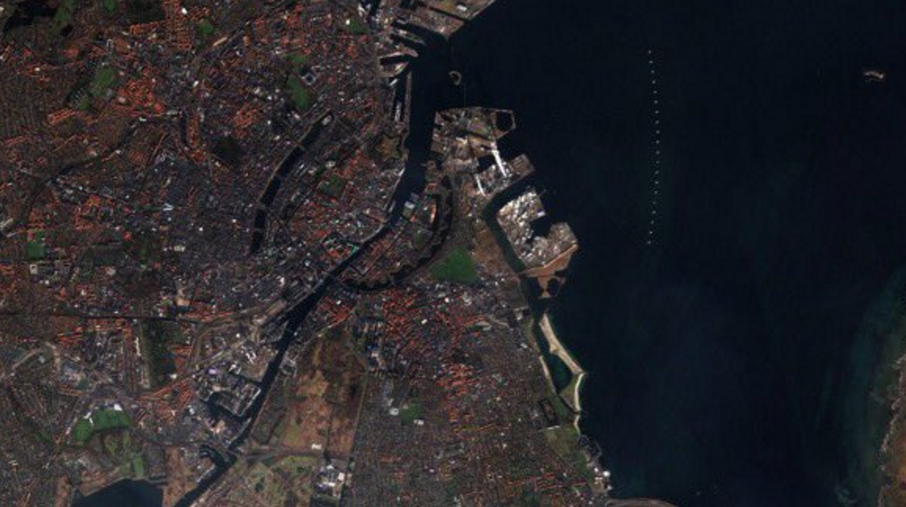 Sentinel-2, an Earth observation mission developed by ESA as part of the Copernicus Programme, has shared a photo taken from space showing the 40MW Middelgrunden offshore wind farm forming  a ”protective shield” around Denmark’s capital of Copenhagen and its harbour.