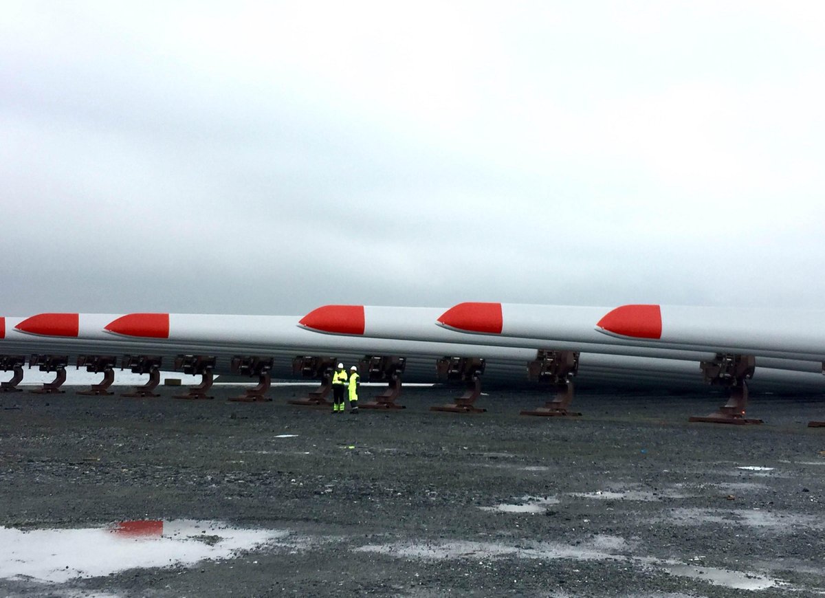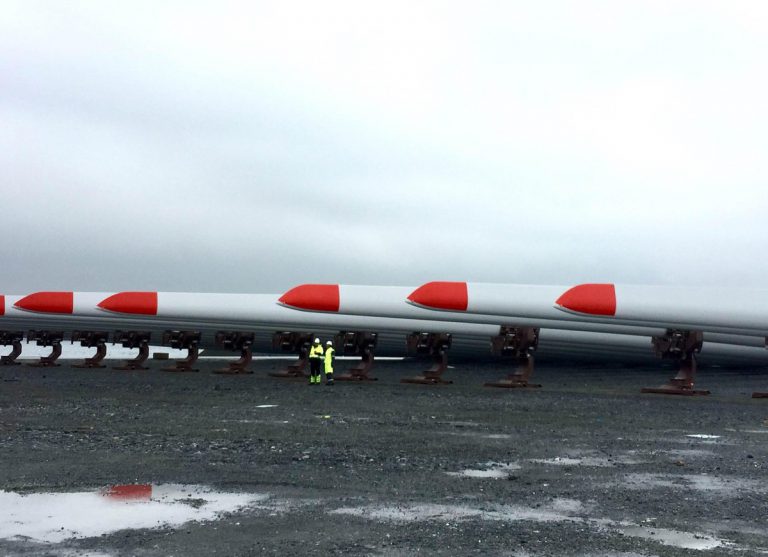 The 75-metre blades for Statoil’s 30MW Hywind Scotland floating offshore wind farm arrived at the assembly site, the NorSea Group’s Stordbase AS in Norway, on Friday, 17 February.