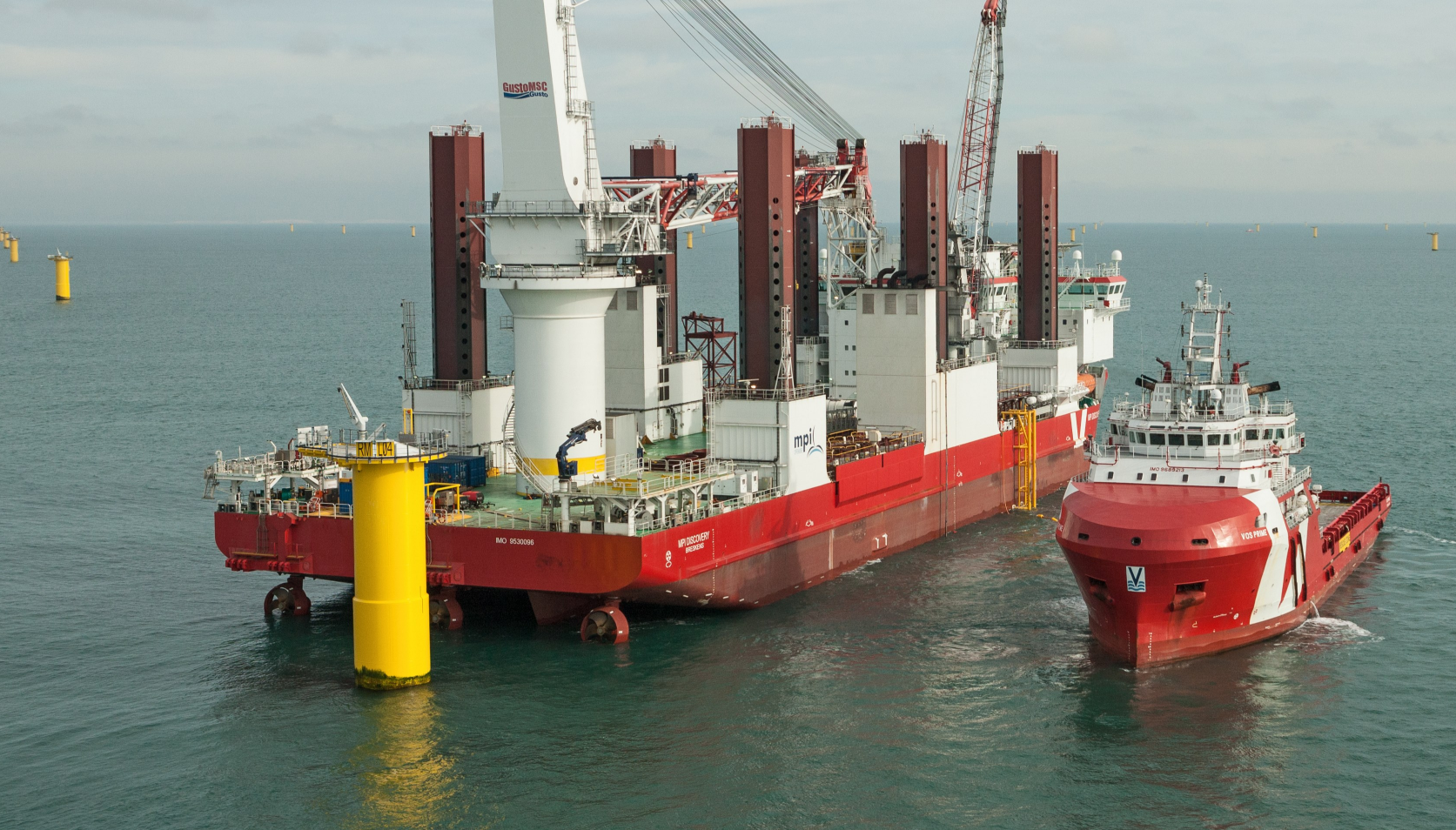 MPI Offshore’s wind turbine installation vessel MPI Discovery has arrived at the 400MW Rampion offshore wind farm and is getting ready to start installing MHI Vestas turbines at the site.