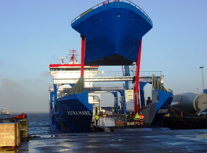Siemens Wind Power’s second roll on/roll off (Ro-Ro) vessel customized to transport wind turbine components, Rotra Mare, has arrived at the Port of Esbjerg in Denmark and is ready to go into service.