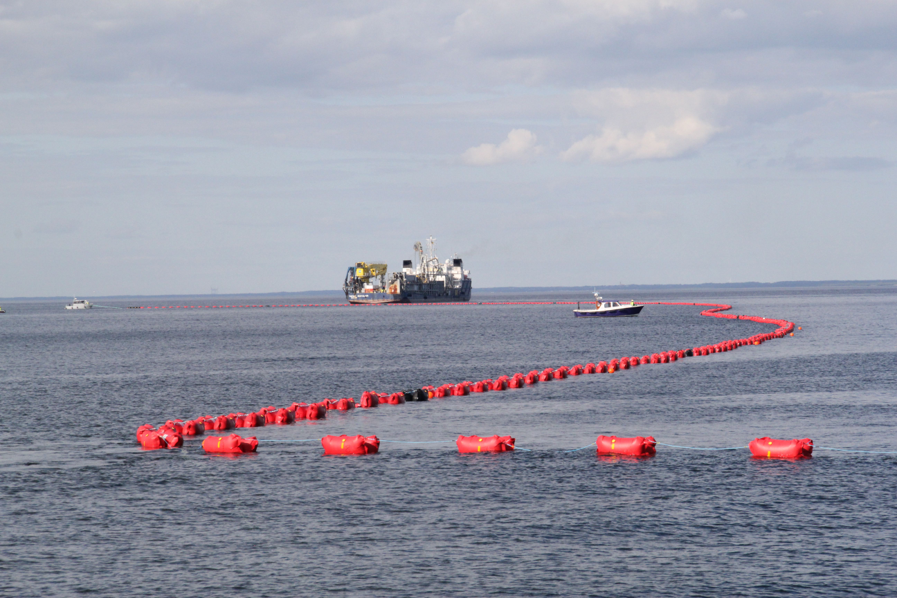 A tidal area measuring more than 350 metres meant safety was a top priority. Jan de Nul deployed a DP2 ship for the cable installation. Oil Control Systems’ new technique was used to safely land the cables. A total of 758 floats have been used to guide cables to the mainland. The empty floats were hoisted on deck, inflated and mounted around the cables. They subsequently went into the water via a chute.