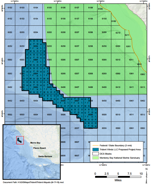 BOEM and the State of California are currently gathering environmental information and ocean use data for the entire coast of California to inform the offshore wind planning process. Initial emphasis for this effort is on California’s Central Coast region due to viable wind energy resources, current commercial interest by offshore wind developers, and available existing transmission infrastructure.