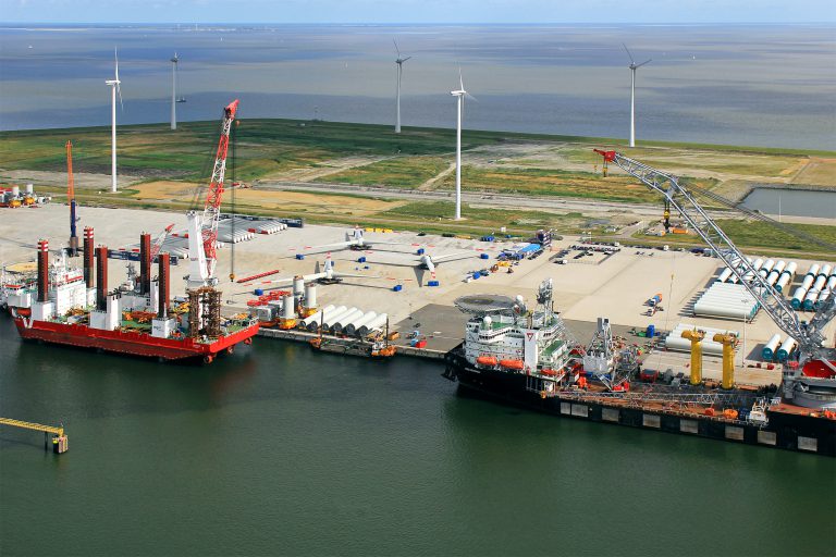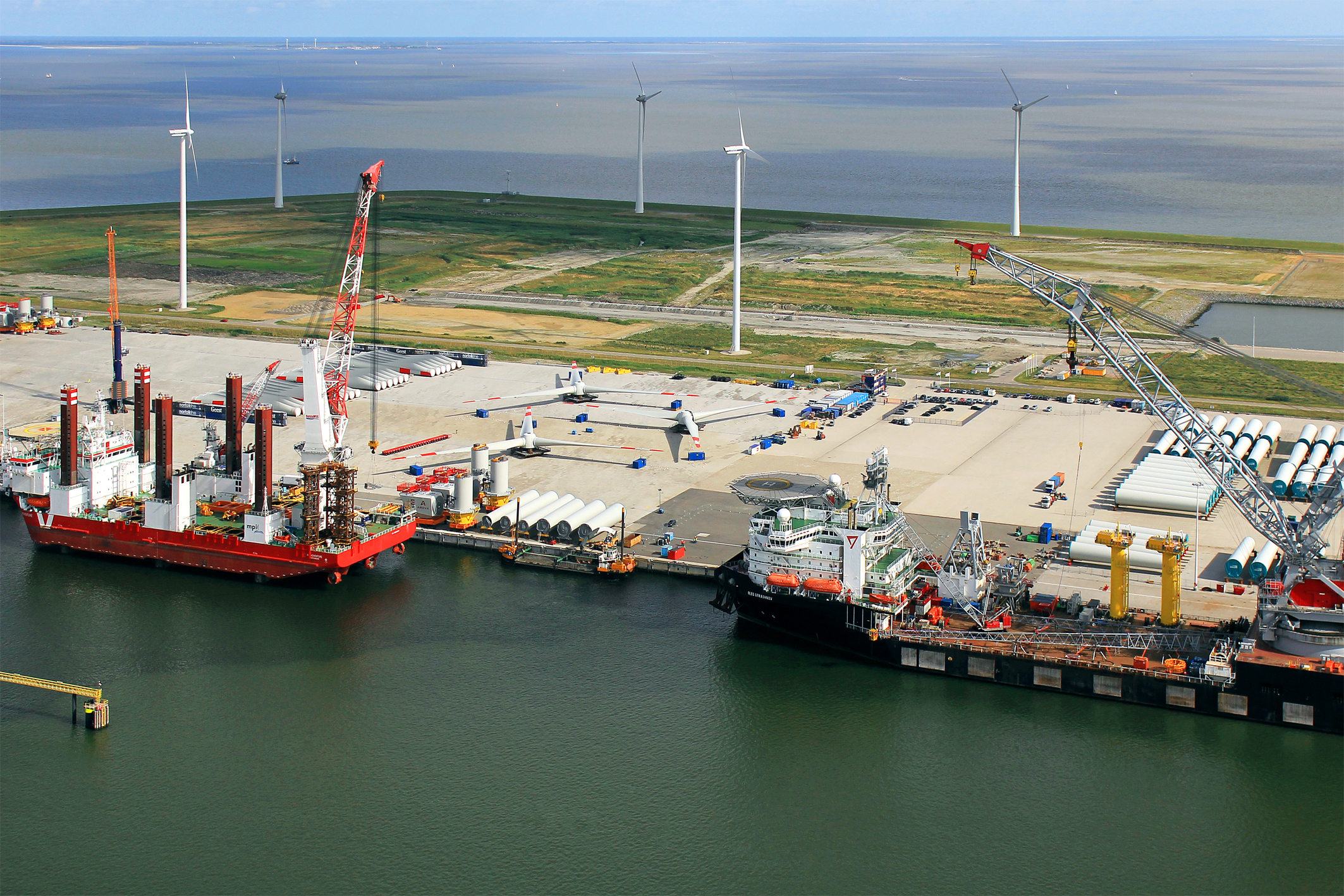A total of 66 transition pieces will be needed for the Merkur wind farm which will be temporarily stored at the Orange Blue Terminal, finally assembled and then transported to the wind farm via jack-up ship.