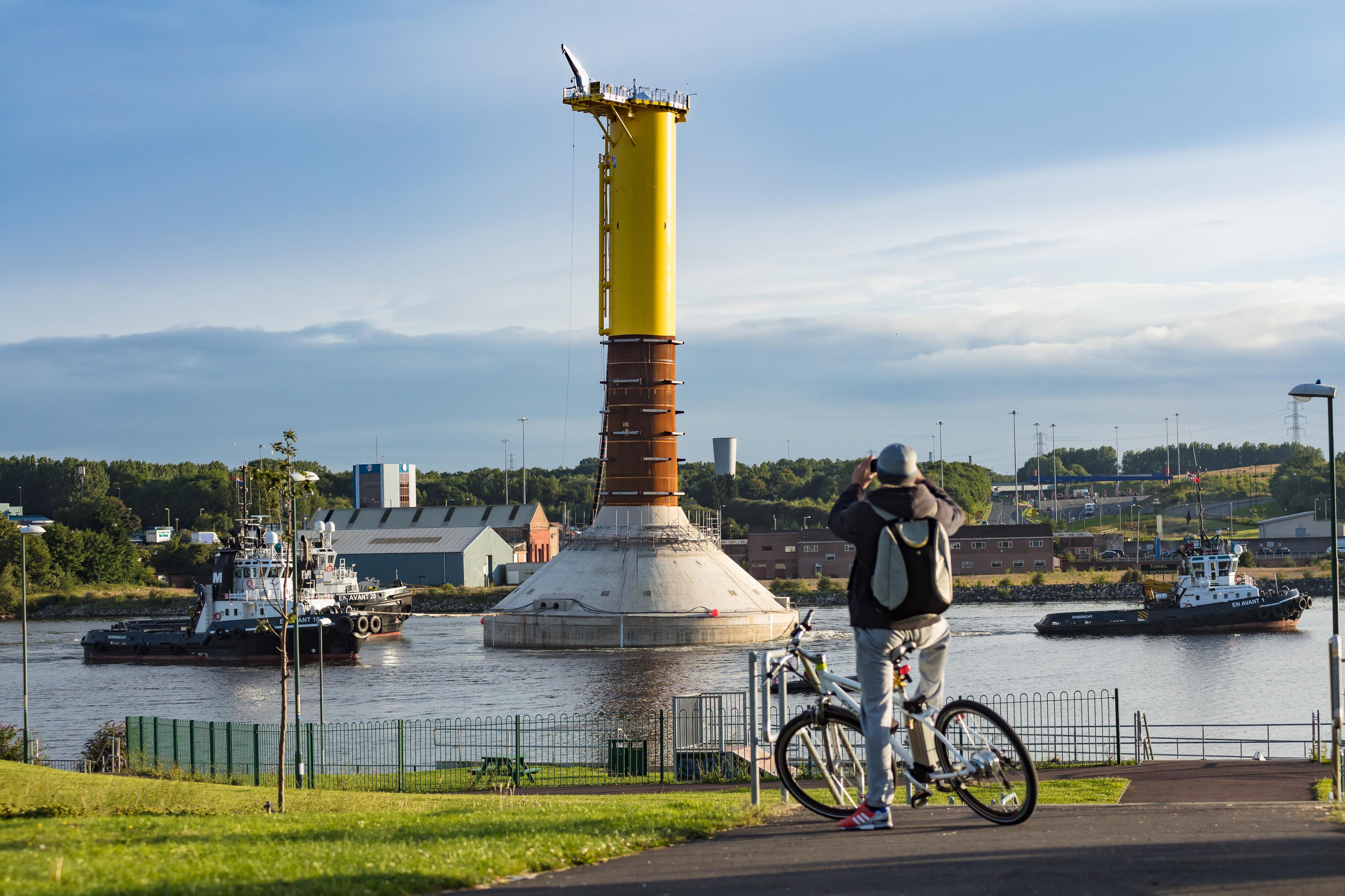 The first of the five gravity based foundations built at the Neptune dry dock in Newcastle by the Royal BAM Group for the 41.5MW Blyth Offshore Demonstrator Project has begun its journey along the River Tyne, EDF Energy Renewables said.
