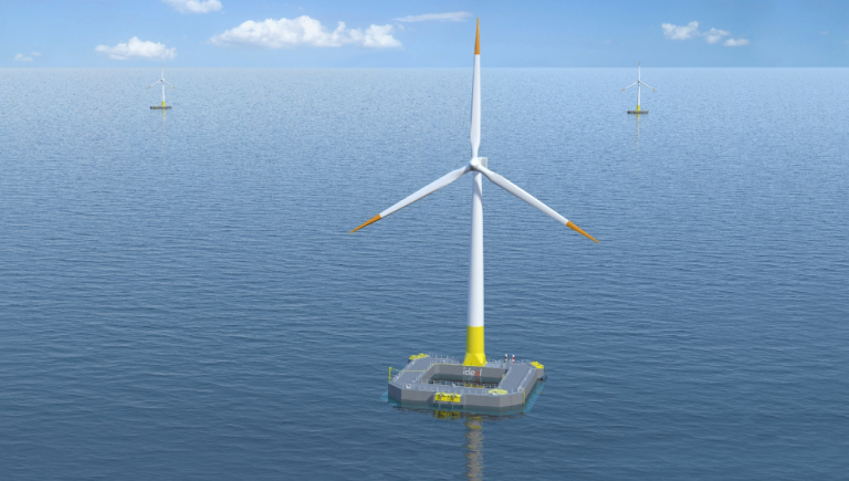 The floating turbine, currently under construction at the Port of Saint-Nazaire, will consist of a Vestas V80 wind turbine mounted on a square ring-shaped floating foundation, known as the Damping Pool, developed and patented by Ideol and built by Bouygues Travaux Publics.