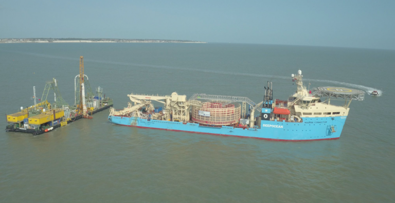 The cable was this week successfully pulled-in at the beach of Pegwell Bay in Kent. Prior to the installation, the subsea cable was transferred from a cargo vessel to Deep Ocean’s Maersk Connector at the port of Blyth at the end of August.