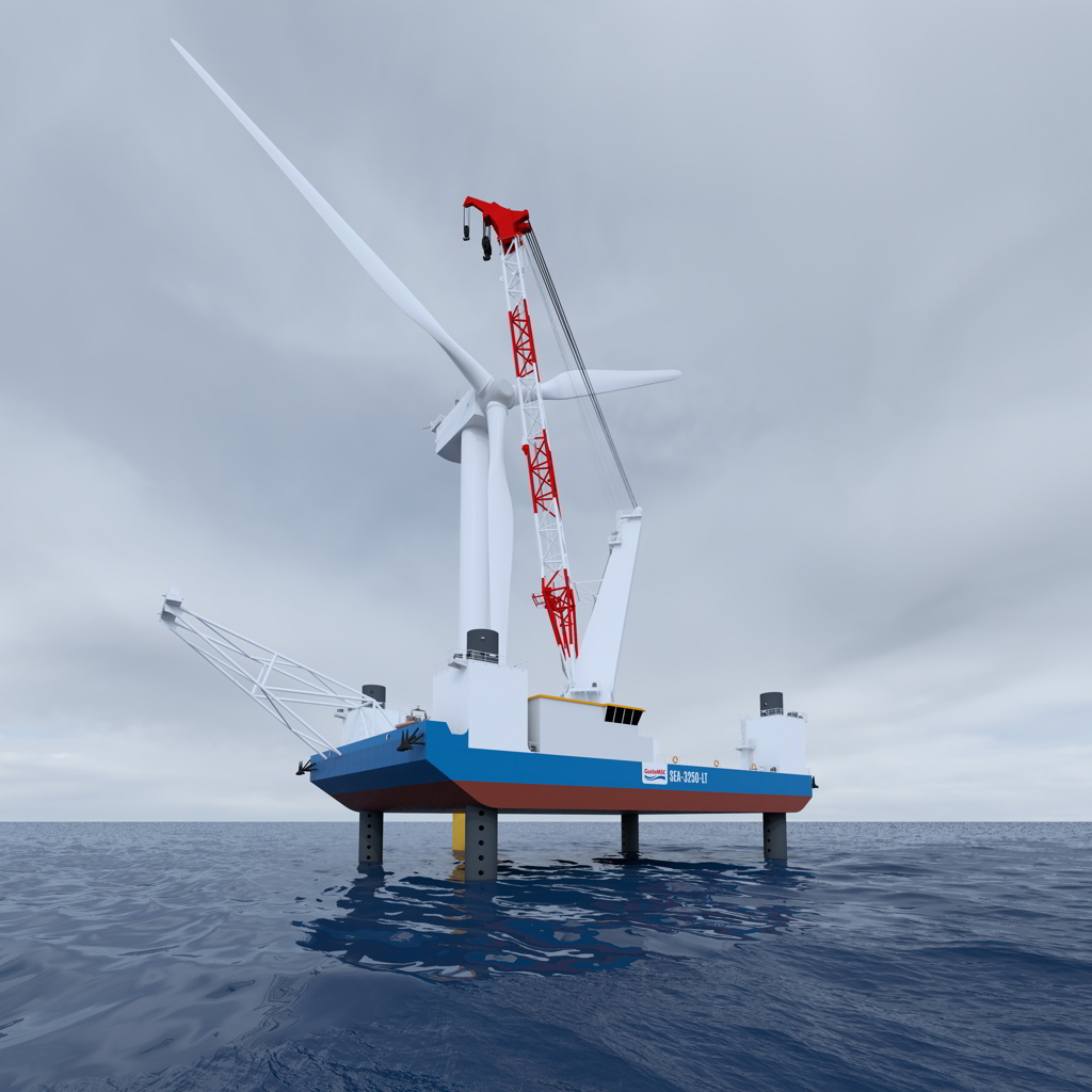 GustoMSC has revealed a new Jones Act-compliant jack-up vessel design for the installation of wind turbines and foundations in the U.S. The SEA-3250-LT installation jack-up is capable of handling the latest generation of 8 to 9.5 MW turbines and foundations.