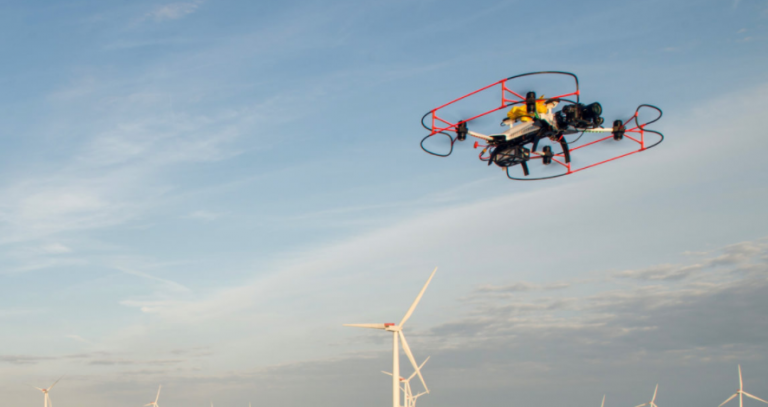 Previously, blade turbine inspections were performed from the ground using a camera for visual inspections or by human rope access. The use of drones has removed the requirement to climb the turbine by flying from the 40-meter vessel, according to Martek Aviation.