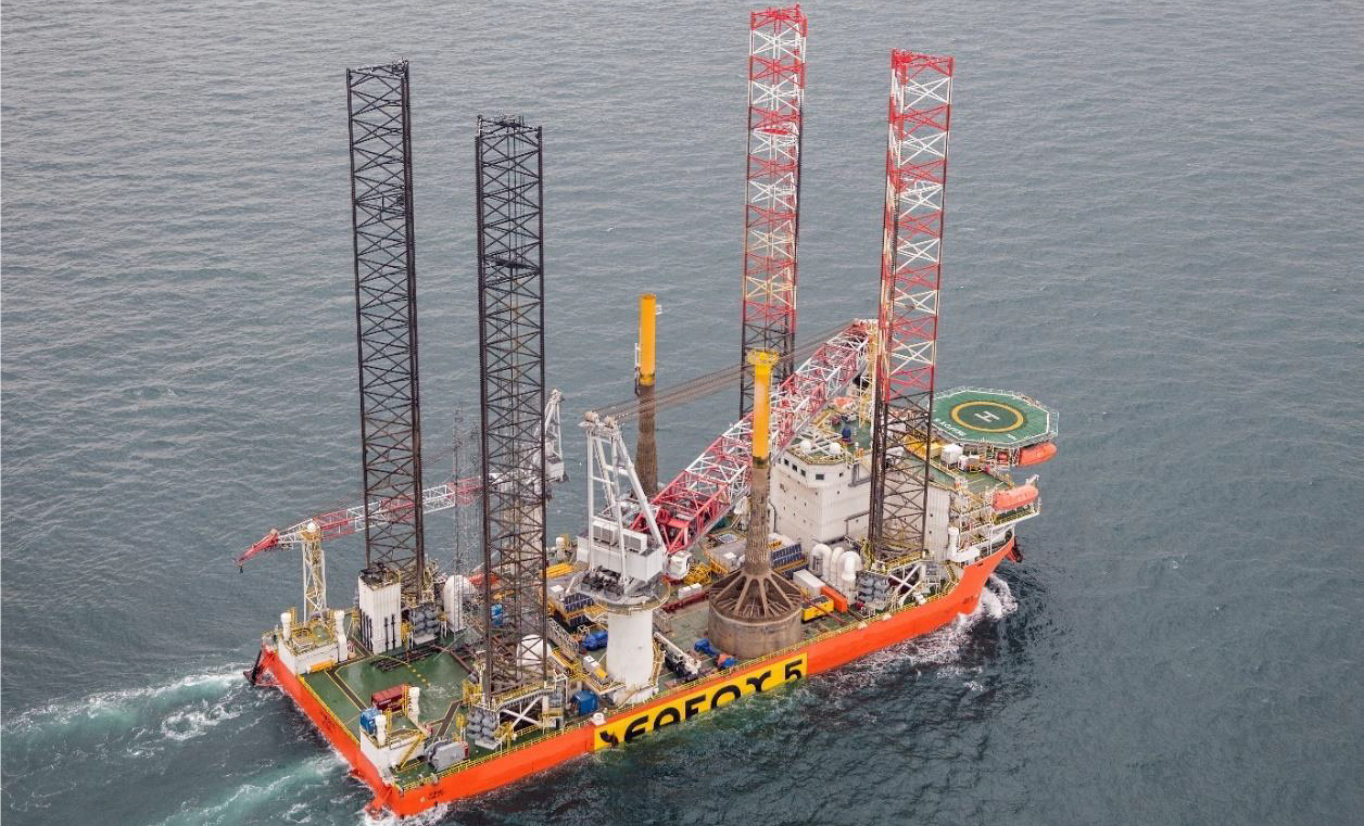 Seafox 5 transit to Flushing for offloading of the met masts after decommissioning; Image: Seafox