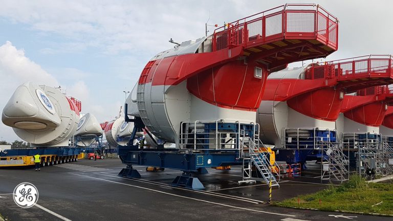 GE Renewable Energy has published a photo showing its Haliade 150-6MW nacelles for the 396MW Merkur offshore wind farm being assembled at the company’s Saint-Nazaire site in France.