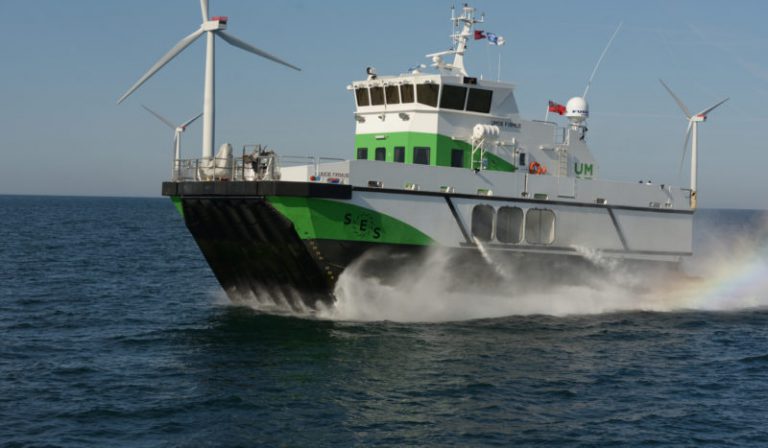 With a maximum speed of up to 80km/h and the ability to work in harsher weather conditions, the Surface Effect Ship is said to reduce operations and maintenance costs related to the transfer of technicians to offshore wind turbines.