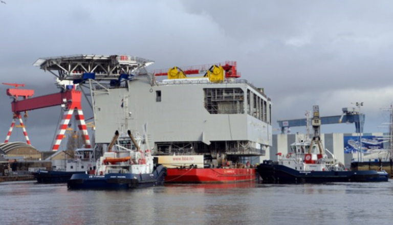 The 50 metres wide and 35 metres long topside was transported to the Forme 1 with a barge and two tugboats.