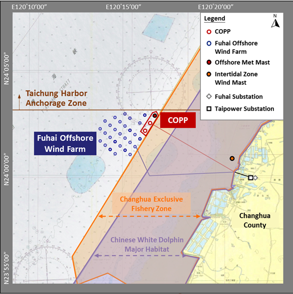 TGC, in a joint initiative with CSBC Corp. and Century Iron and Steel Company, applied for the Taiwanese government’s scheme supporting demonstration offshore wind projects in 2012, and was awarded the government grant support for the Changhua Offshore Pilot Project (COPP) and Fuhai Offshore Windfarm in 2013.