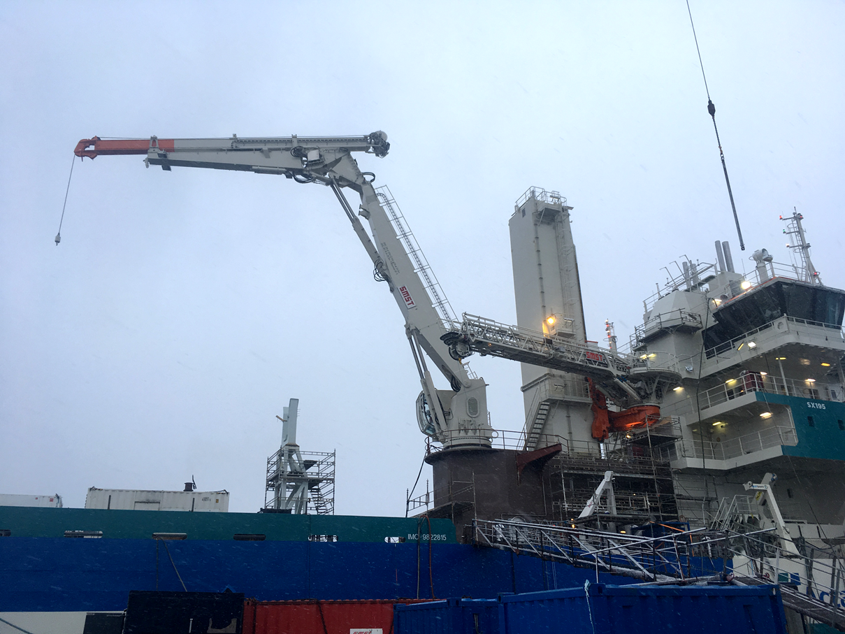 The installation works began in early January with the fitting of the 3D motion compensated crane and access & cargo tower.