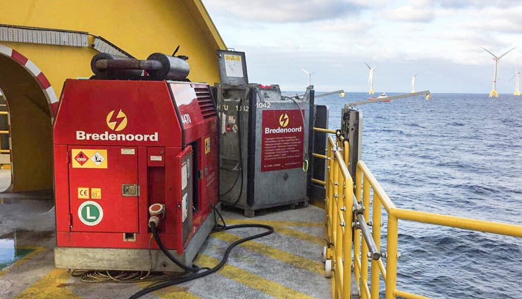 Although the wind turbines are now supplied with power from the mainland, the Bredenoord generators are still in use as emergency backup generators, according to the company.