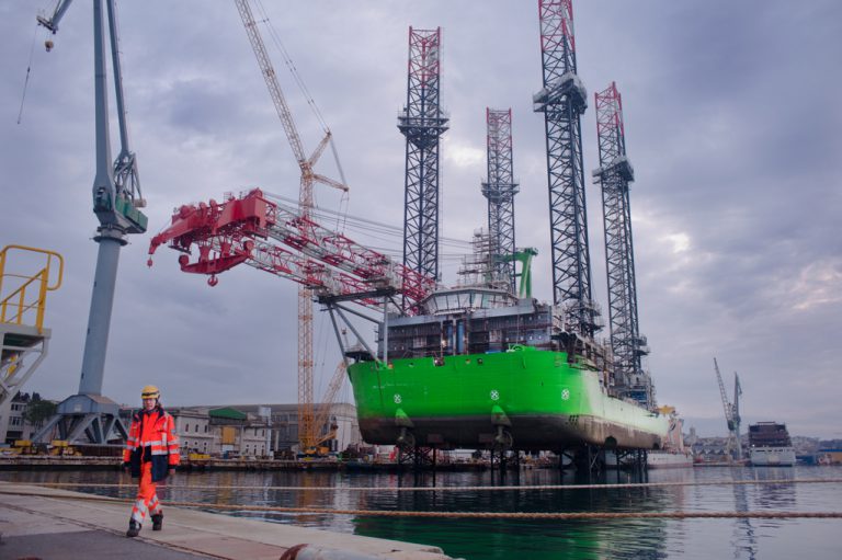 GeoSea’s new jack-up vessel is also equipped with an 800-ton leg crane installed over the jack-house and around the aft leg.