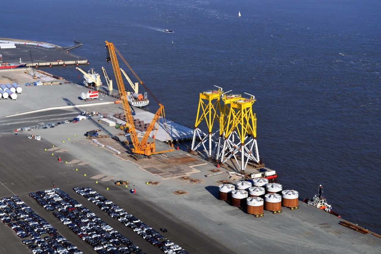 Cuxhaven terminal operator Cuxport is involved in the assembly and storing of the 20 suction bucket jackets for the project until they are shipped to the installation site some 40 kilometres northwest of the island of Borkum in spring.