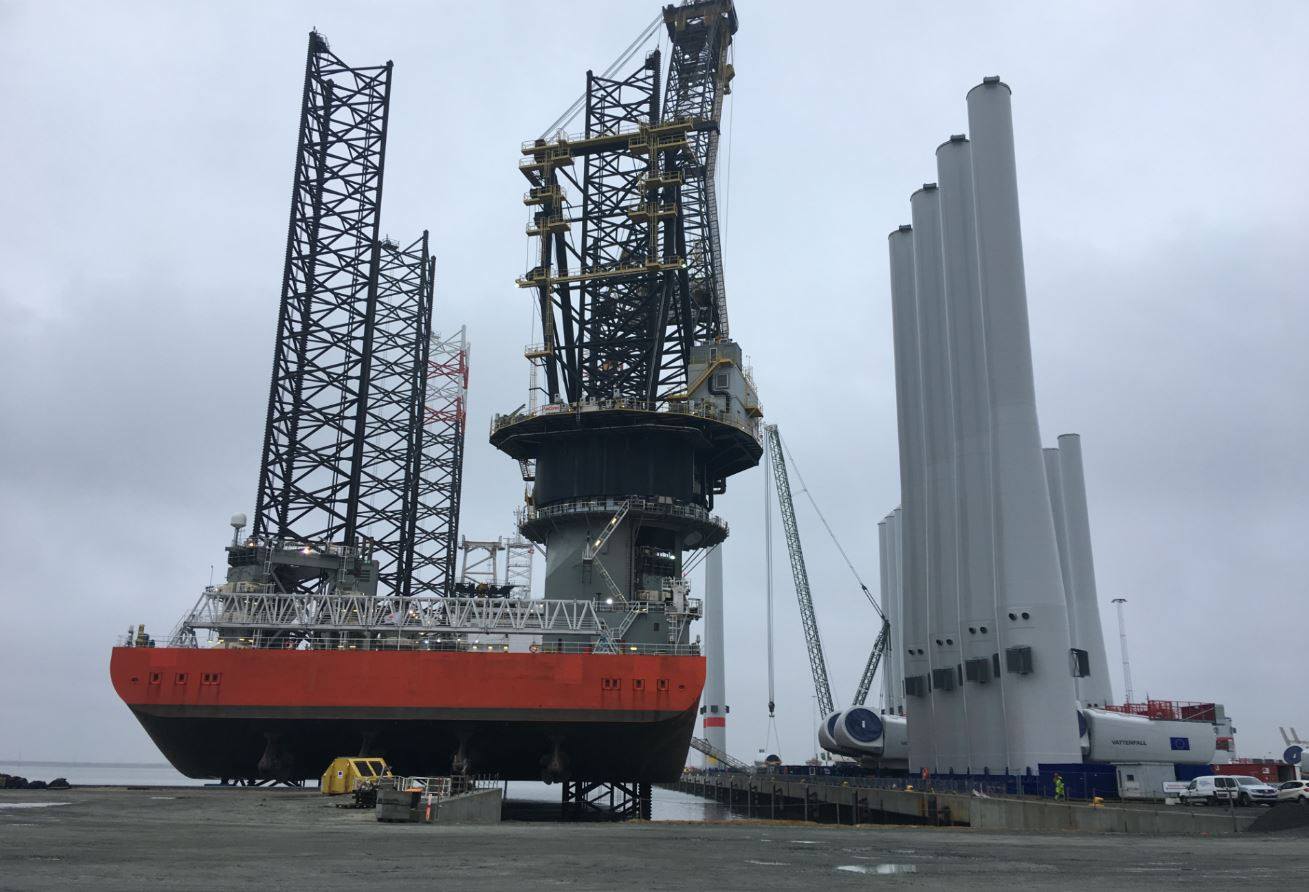 Swire Blue Ocean’s wind turbine installation vessel (WTIV) Pacific Orca has arrived at the Port of Esbjerg, Denmark, to load the wind turbine components for Vattenfall’s European Offshore Wind Deployment Centre (EOWDC).